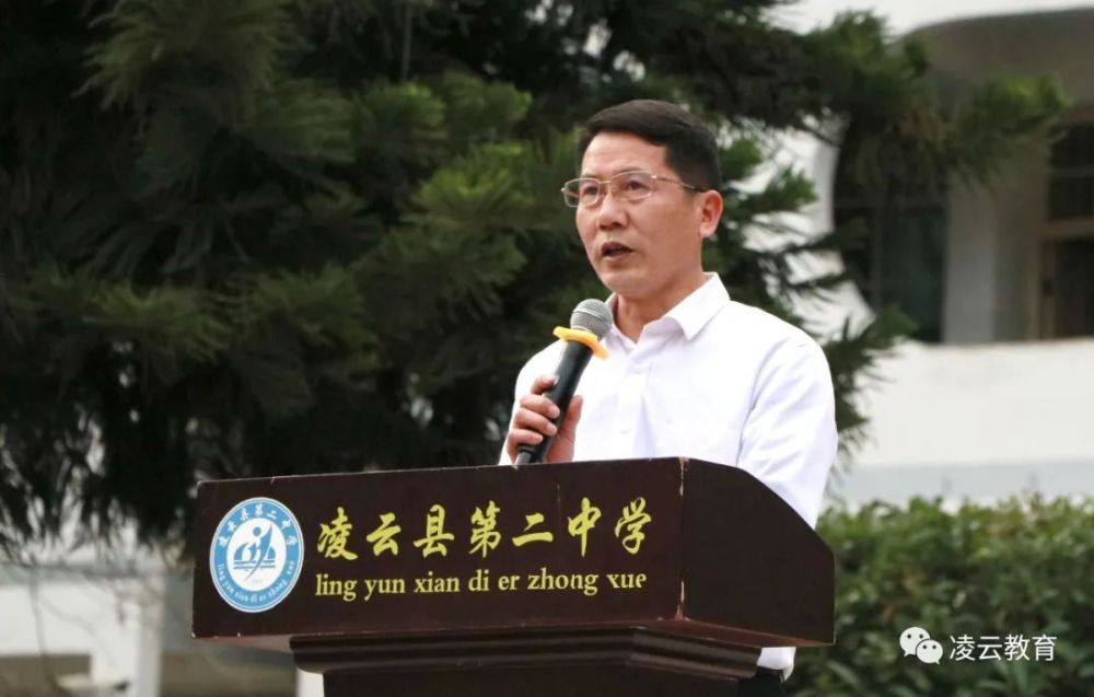 校长张浩宣布“凌云县第二中学第十四届九年级篮球运动会”正式开幕。