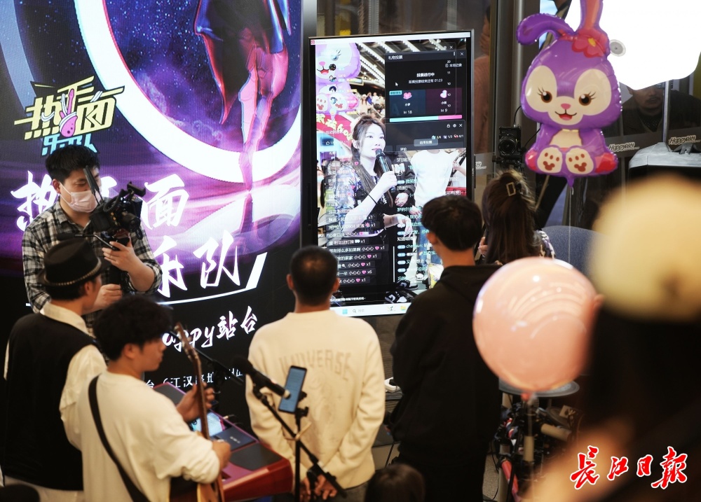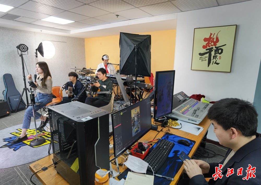 热干面乐队直播中。记者何晓刚 摄