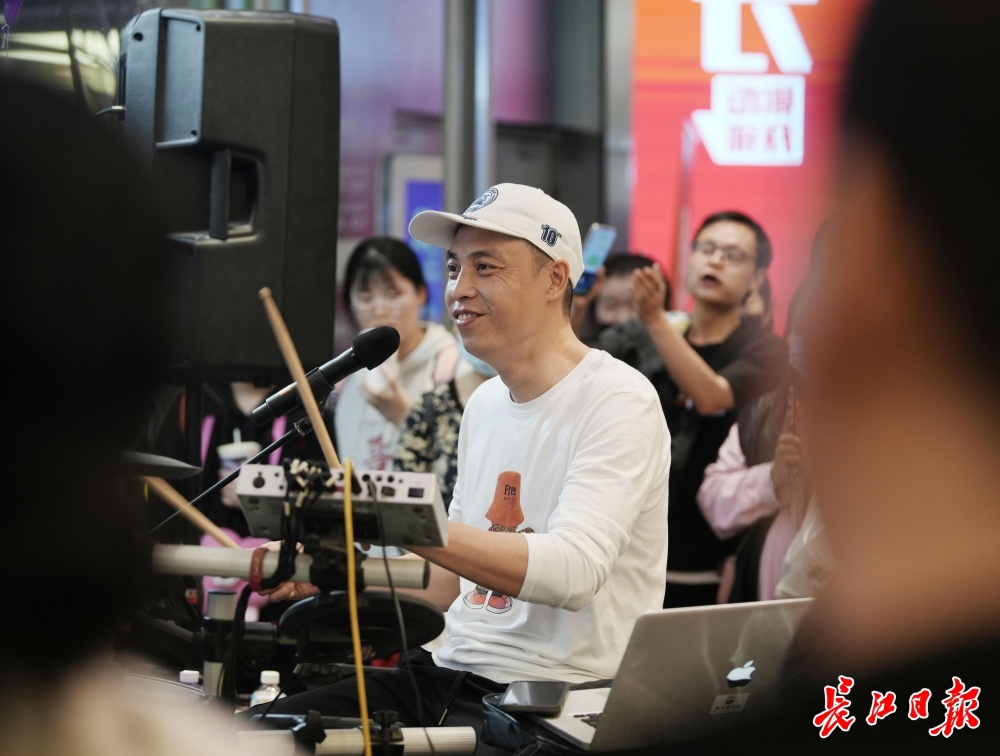 诗诗是热干面乐队的铁粉,已经关注热干面乐队三年,只要有时间她都会到线下观看户外直播,诗诗说:“热干面乐队对音乐的热爱、对梦想的追求激励着我,让我成为更好的自己。”来自湖南的小罗在第一次看热干面乐队进行户外直播时,便参与到现场PK活动,只见他在舞台上秀了一段Rap,他说:“武汉的音乐氛围很浓厚,在这里能交到很多志同道合的朋友。”