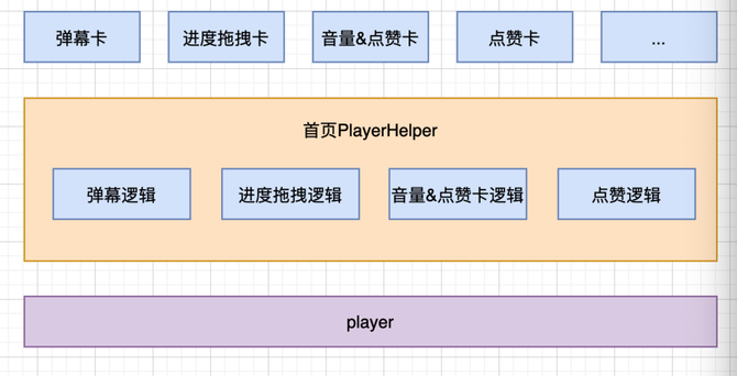 首页 playerHelper 承载了更多卡片功能,在内部以 if else的方法做逻辑分支管理,如音量和点赞逻辑出现了耦合则又是一条新的分支,改动可能会影响到原有的功能,我们将首页的 playerHelper 展开,结构如下: