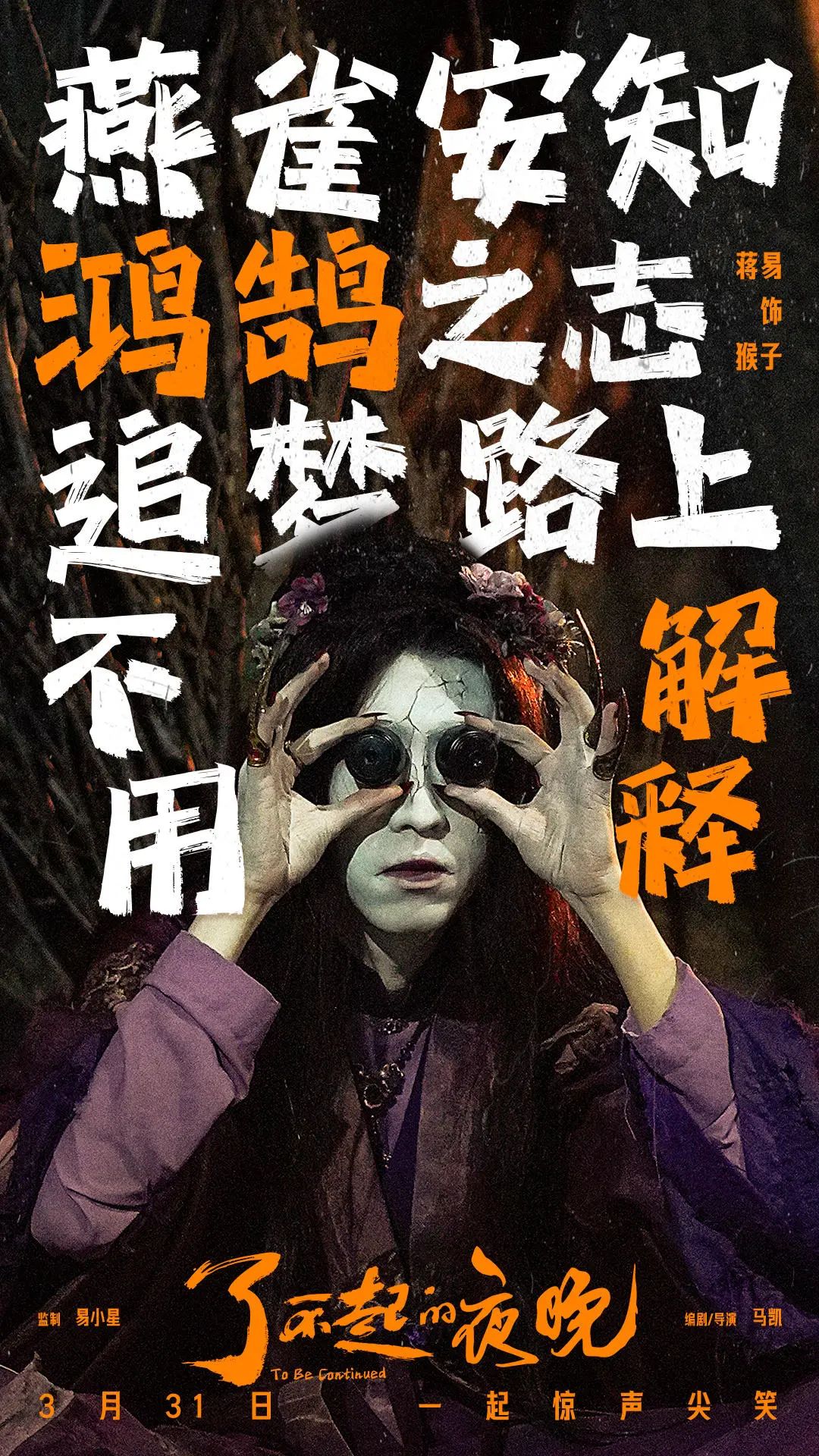 蒋易饰演的猴子是传媒公司三兄弟中的“食物链”底层,也是他肩负起了“扮女阿飘”的重任,一个深夜游荡在影视城里的假阿飘,面色惨白、车座子脸,时不时还得撩撩长发、整整指甲,就算他什么都不说,光是那个扮相就已经足够好笑了。