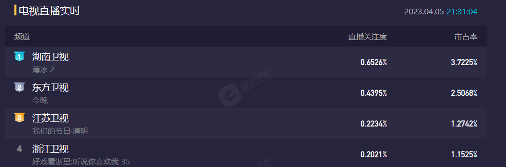 湖南卫视首播2集,拿下卫视收视第二,实时收视甚至超过了《无间》首播成绩。