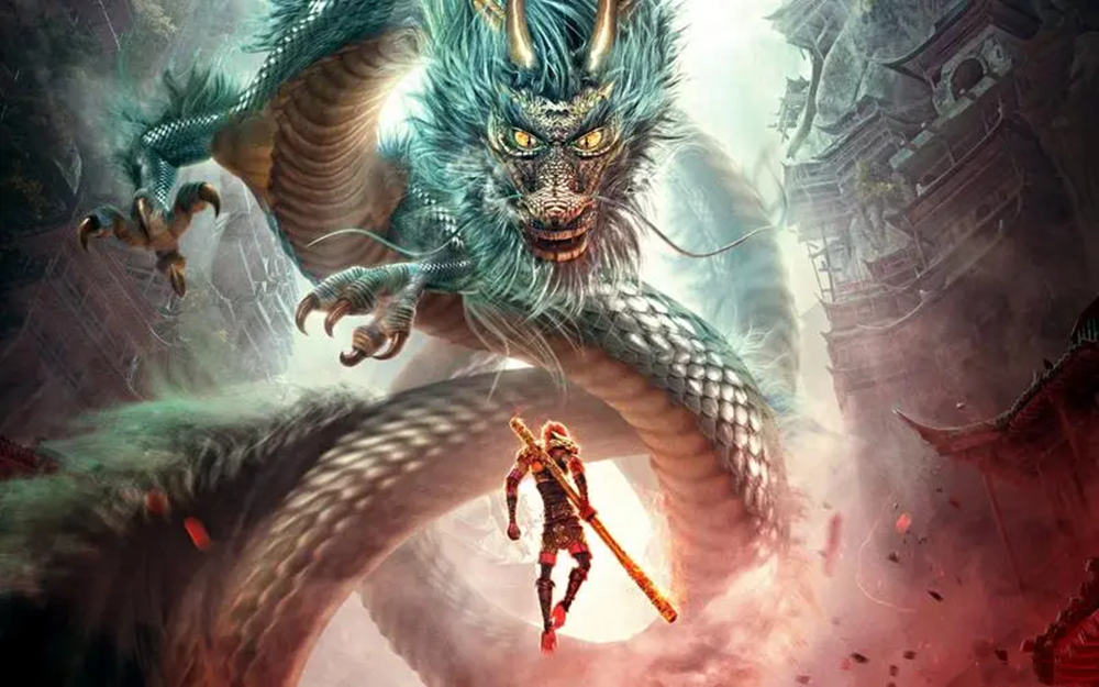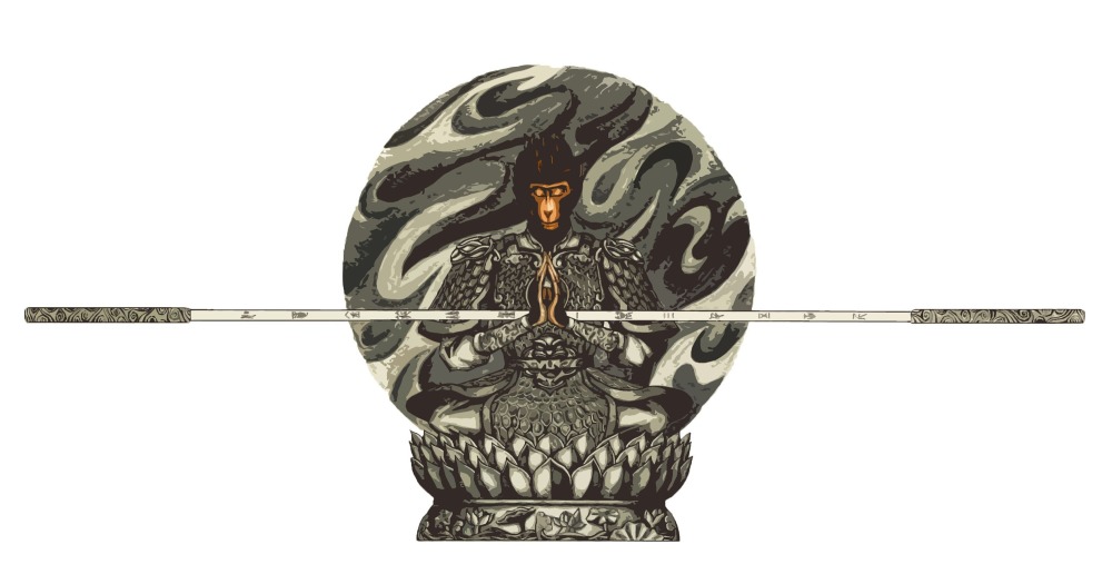 有一天,女娲大神留下的灵石中蹦出一只石猴。它脚踏五彩祥云,身披金甲圣衣,手持定海神针。它说:“我要那天,再也不遮我眼。”