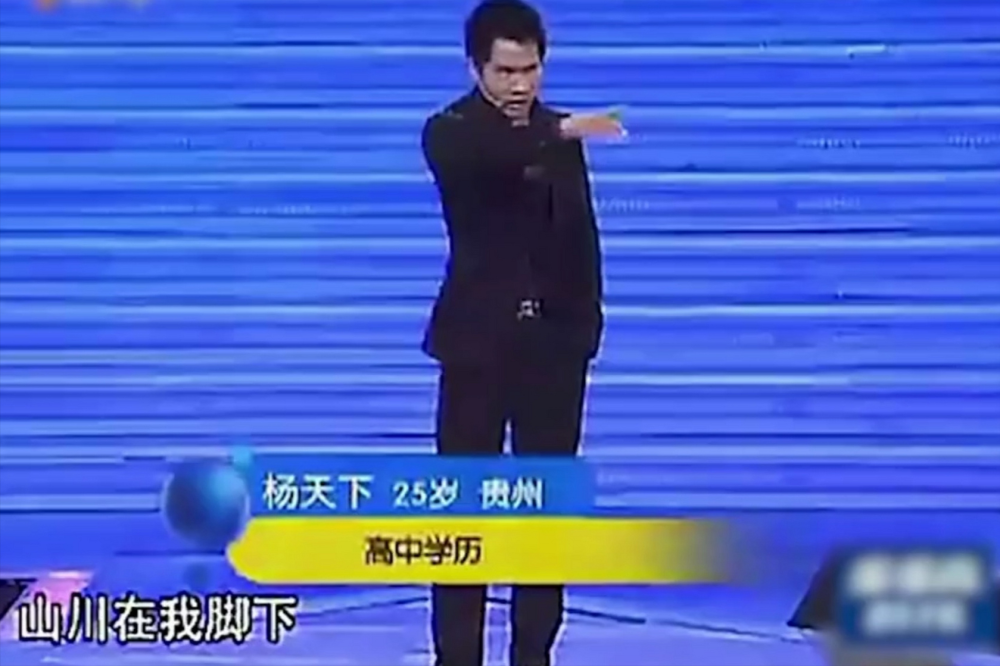 这句无比嚣张的开场白,让大家认识到了他,同时因为在节目中杨天下的表现,并不能配上那句开场白的自信,在节目播放后,各种谩骂、嘲笑向他攻去。