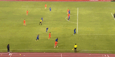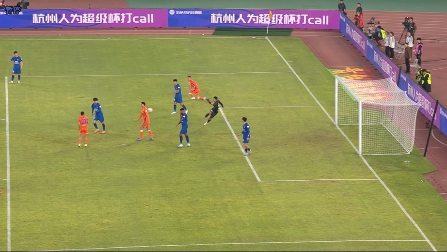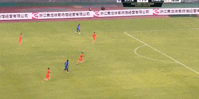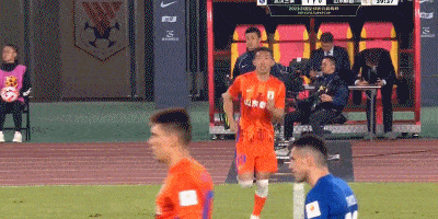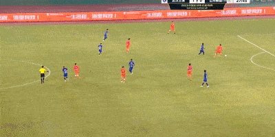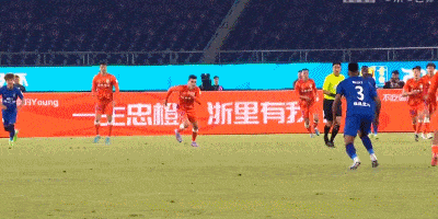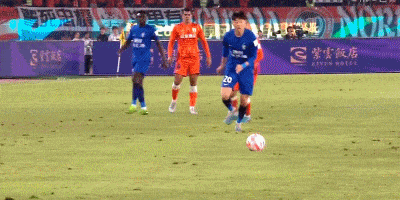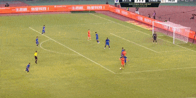 第38分钟,武汉三镇角球进攻,被解围出禁区后,何超远程凌空射门偏出。