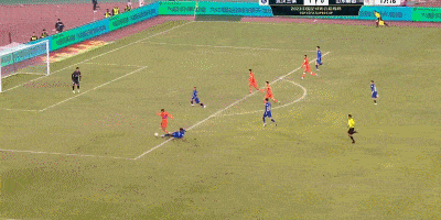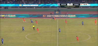 第56分钟,谢鹏飞突破后被拦截,皮球到了斯坦丘脚下,斯坦丘顺势直塞,谢鹏飞低射破门,武汉三镇2-0领先山东泰山。