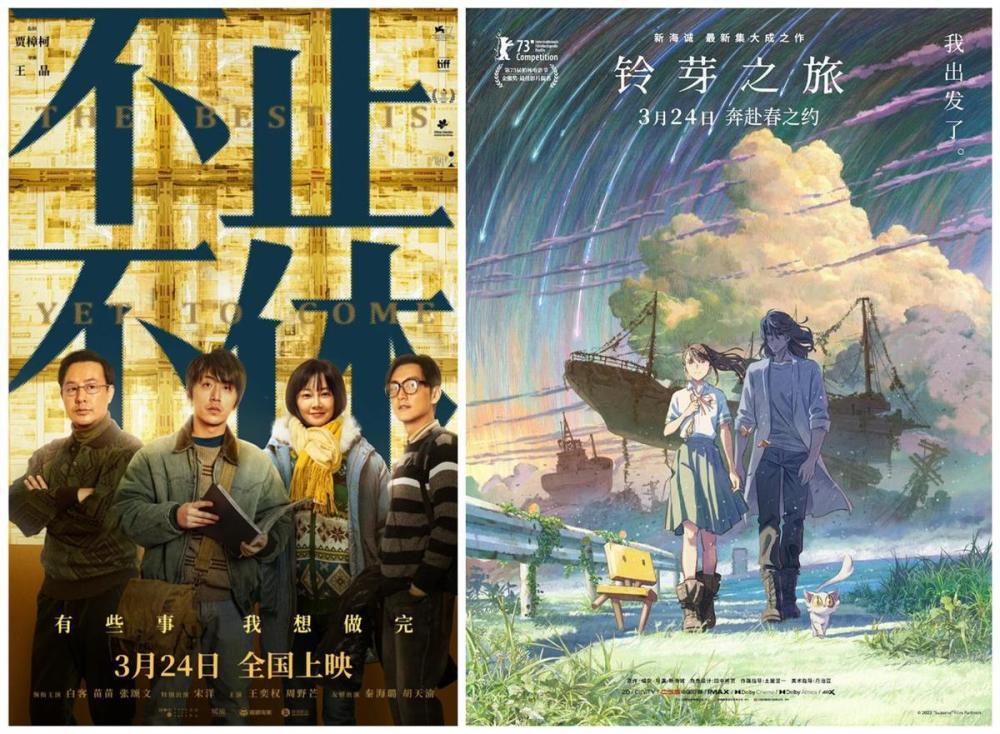 3月24日,两部电影上映,一部为《不止不休》,由因《狂飙》大热的张颂文出演,另一部则是日本动漫导演新海诚制作的《铃芽之旅》。上映12天后,二者的票房分别为5489.9万元和5.74亿元。有媒体称,这是张颂文败给了新海诚。