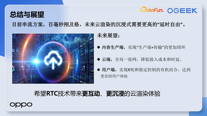 右边图片是 OPPO 的 3D 虚拟数据中心,基于优化后的 RTC 技术,整体时延及体验得到了提升。