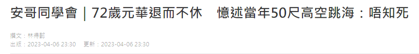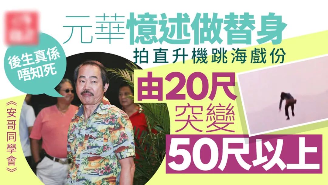 近日,72岁元华接受港台节目《安哥同学会》访问,分享了多年来拍戏的点滴,其中就谈到做龙虎武师时50尺高空跳海经历。