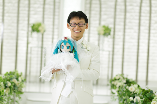因为对初音非常喜爱,近藤显彦不顾家人的质疑,勇敢的在线下举行了一场婚礼。