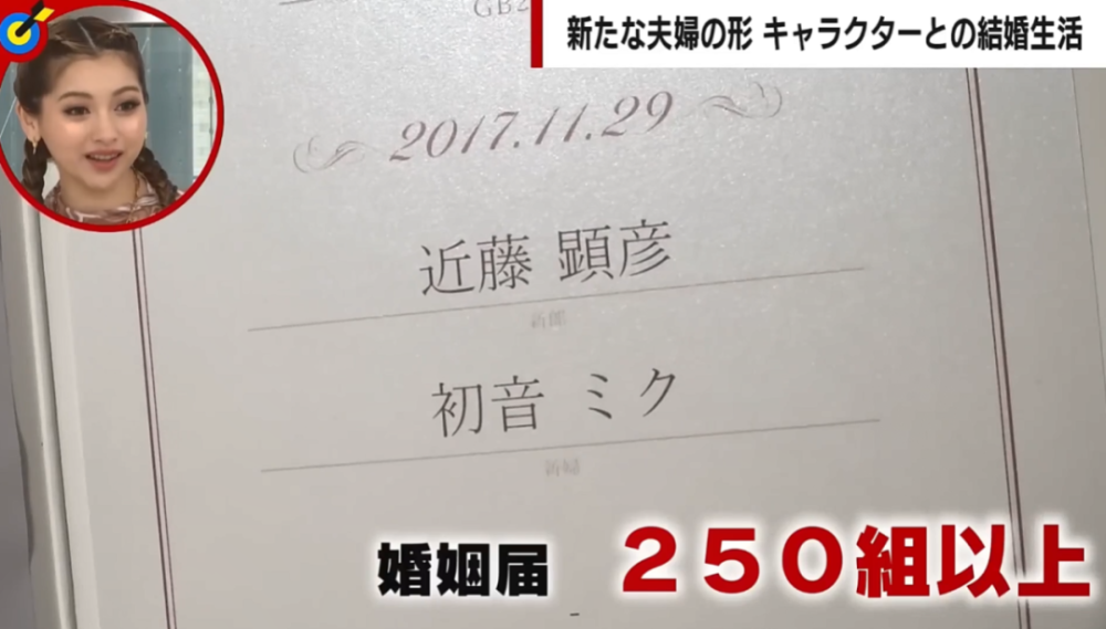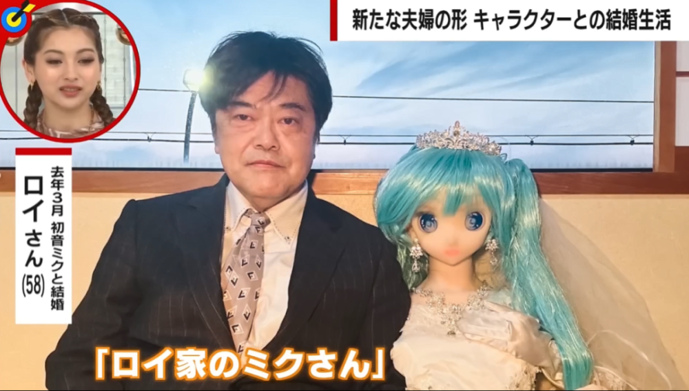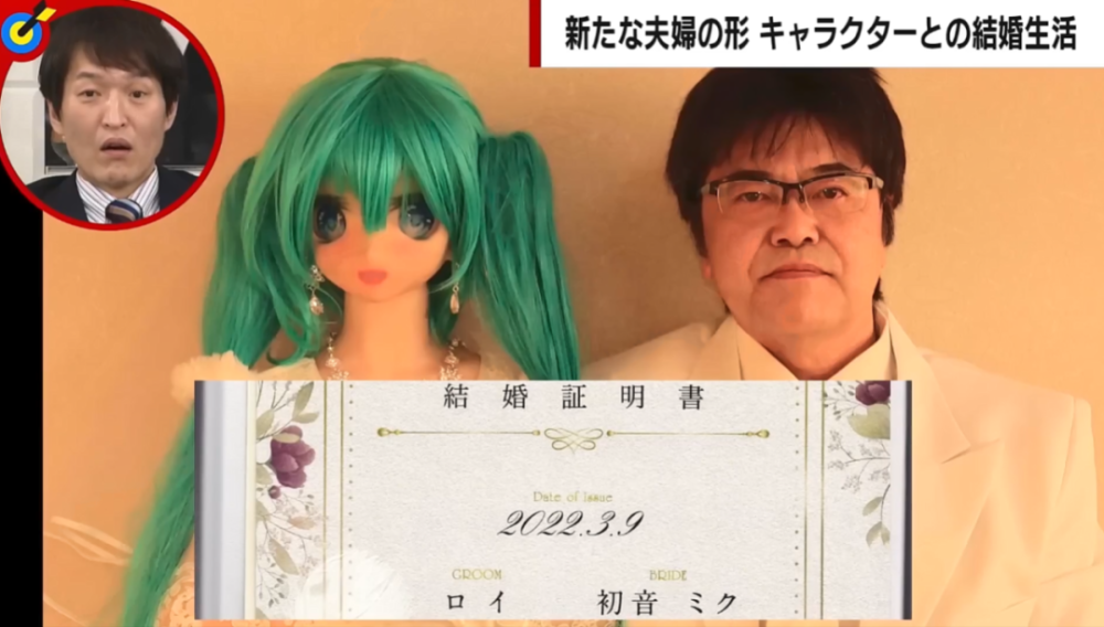 如今像近藤显彦这样选择和虚拟角色结婚的人,在日本还有很多,节目中就有另外一位也娶了初音的roy先生。