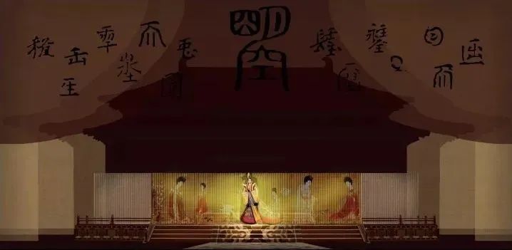 序幕时,只见舞台上镂空着武则天自创的十七个字,“曌”居殿檐上方,取日月凌空之意,刻画武则天的胆识与气魄,奠定了故事的传奇色彩基调。