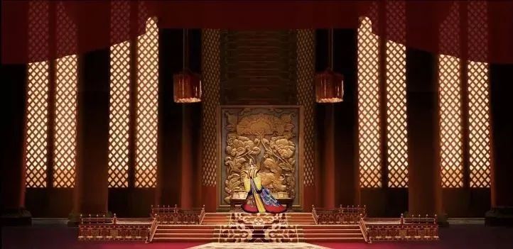 话剧《武则天》的成功,极难的点在于将武则天从18岁到80岁的一生,浓缩为2小时呈现在一方舞台之上,这不仅要依靠剧本,更有巧夺天工的舞美设计的功劳!舞美设计王琛老师在着手《武则天》设计时,选取唐代大明宫的形象,背景金碧辉煌、若隐若现的宫殿框架层层递进,将武则天走向权力中心的道路浓缩其中。