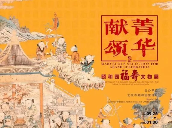 本次展览的文物品类涵盖铜器、瓷器、玉器、珐琅、钟表、古籍等,一共99件套。分为瑞玉吉金、福书寿牒、奇工绝艺、赋彩增华四个展区,分别展出了颐和园的园藏玉器;帝后和大臣书法绘画和册页典籍;钟表、竹木雕、泥塑、盆景等宫廷节庆寿礼;宫廷瓷器、珐琅器等。