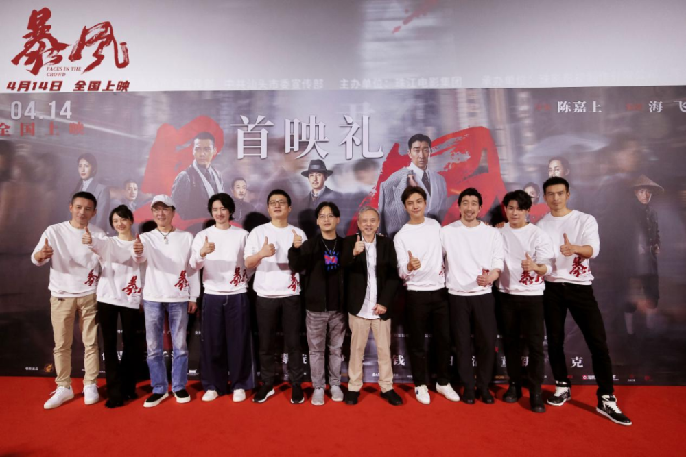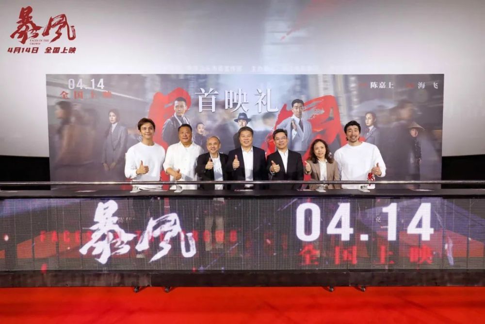 4月11日,谍战动作片《暴风》在广州举行首映礼。总制片人孙金华,制片人刘佳笳,导演陈嘉上,编剧海飞,领衔主演陈伟霆、王千源,主演王龙正,参与主演钱波、田小洁、纪焕博、董钒、马克等主创亮相,分享影片幕后故事,并与观众互动。