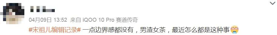 部分网友觉得,在明知男方有女友的情况下,还发“爱妹妹”这样的文字,缺乏界限感,显得非常暧昧,完全没有考虑到对方女朋友的心情,甚至有的吐槽宋祖儿“茶里茶气”。