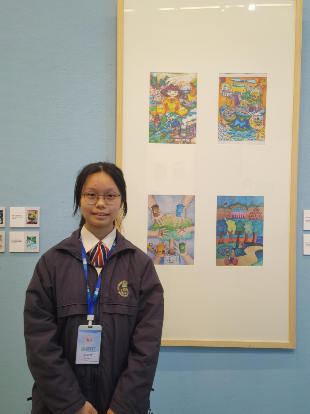 澳门大学附属应用学校的初中女生周彦希也在找到自己的作品《绿色地球由碳中和开始》时欣喜万分。为了完成这幅画作,她上网搜索了许多有关“碳中和”、“碳达峰”的内容介绍,“深入了解后,我觉得绿色低碳对我们国家非常重要!我希望可以多植树造林去中和二氧化碳”。