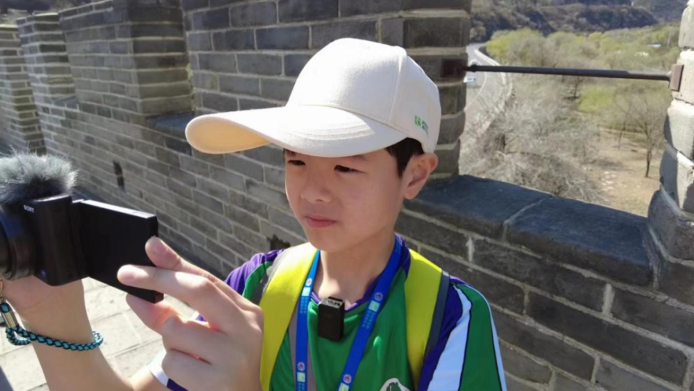 在他旁边,香港英基白普理小学5年级的古铠荣拿着相机不停地“咔嚓”拍照,尽管是第一次尝试用单反相机摄影,但古铠荣展示出了很高的摄影天分,在他的镜头下,长城显得更加巍峨雄壮。“从我三岁知道有长城,我就很想来的!第一次来,一定要拍下我们国家最漂亮的景色代表,那就是万里长城啊!”