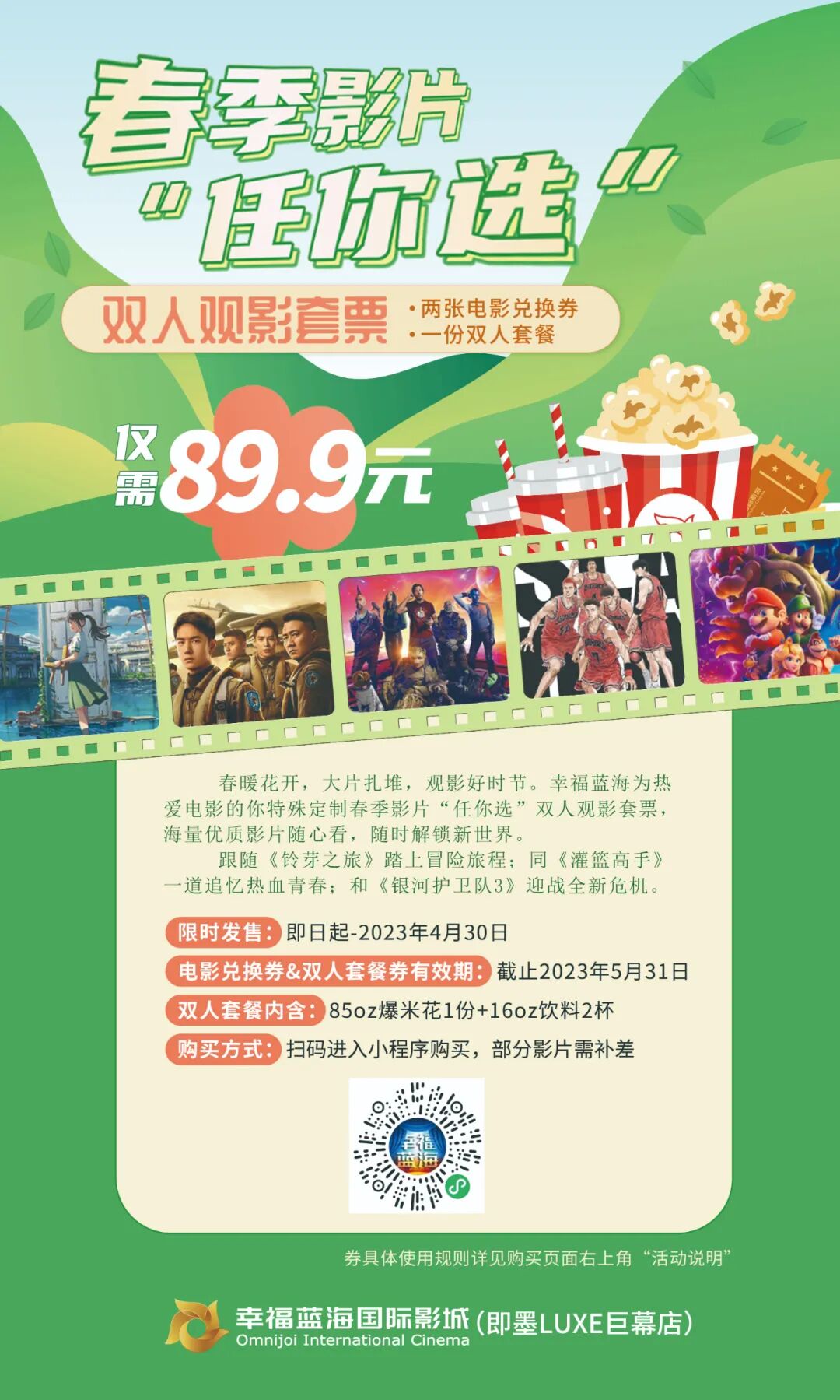 幸福蓝海丨春季影片“任你选”双人观影套票上新啦!