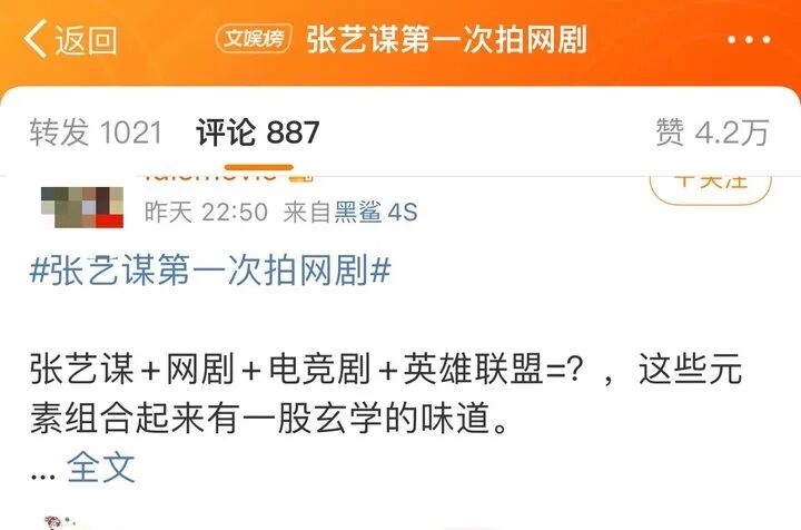 张艺谋也进军网剧了,要拍的还是《英雄联盟》。