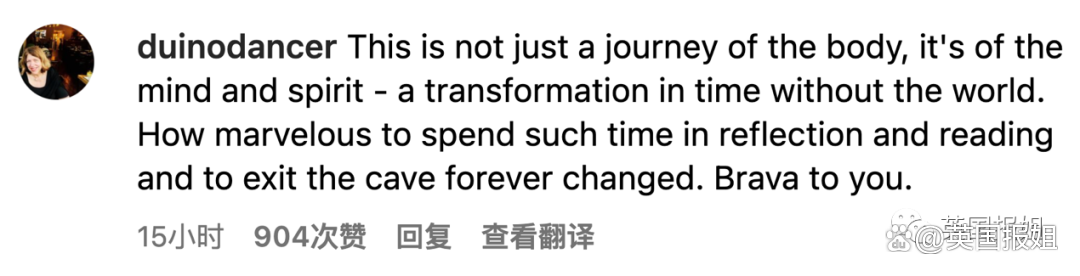 在洞内自我反思和阅读,出洞时人也永远改变了,干得漂亮!”