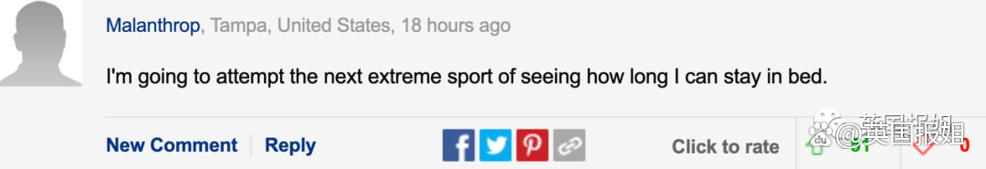 “下一个极限运动挑战:看看我能在床上躺多久!”