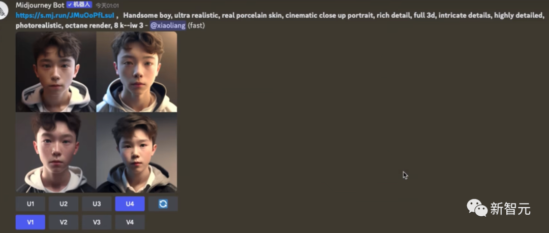 吴伍六选择了当下主流的AI绘画软件Midjourney,并上传了一张自己的照片。