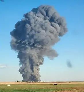 当地警方表示,那天晚上他们相继接到了 8 个报警电话,说一座奶牛场发生爆炸,爆炸产生了巨大的蘑菇云,数公里外清晰可见,现场燃起大火,厂房受到爆炸波冲击,门板墙壁被炸破。