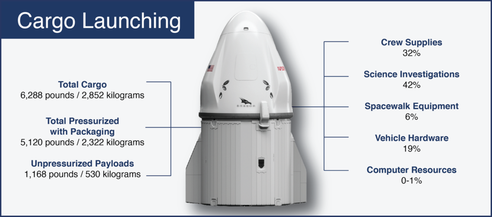 本次返回,CRS-27“龙”货运飞船搭载了大量的科学实验成果,比如“红衣主教健康2号”实验(Cardinal Health 2),旨在预防太空引起的心脏病和地球上的心脏病,并为航天员和地球人类的心脏健康寻找潜在的治疗方法。“红衣主教健康2号”和其他实验的样本将很快被装入“龙”货运飞船,供地面研究人员进行分析。美国国家航空航天局(NASA)飞行工程师弗兰克·卢比奥和斯蒂芬·鲍恩打包了各种研究装置和空间站硬件,将它们安全地绑在“龙”飞船内。