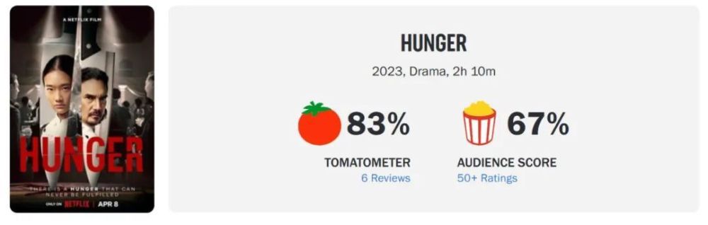 《饥渴游戏》上线后,IMDb7.0,烂番茄新鲜度83%,爆米花指数67%,口碑中规中矩。