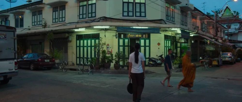 女主在这样的对比中走向家的方向,从夜晚走到了黎明,家门口亮着青灯,僧人又从黎明的街上走过。