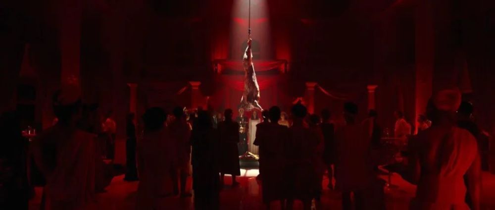 又如用“血与肉”、“祭奠盛宴”这样的宴会主题或菜品命名,搭配嗜血咬食、火烧全牛等构图、色调、摄影都非常艺术的画面,呈现社会名流表面的尊贵身份与私下的不堪人格。