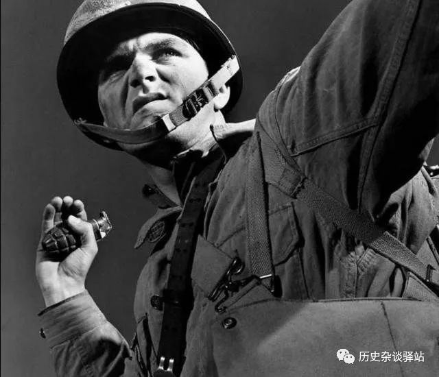 投掷卵形手雷的美军士兵