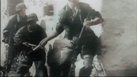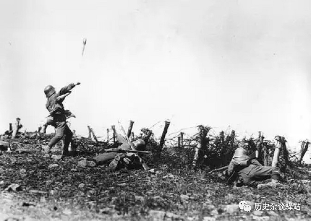 正在投掷手榴弹的德军士兵