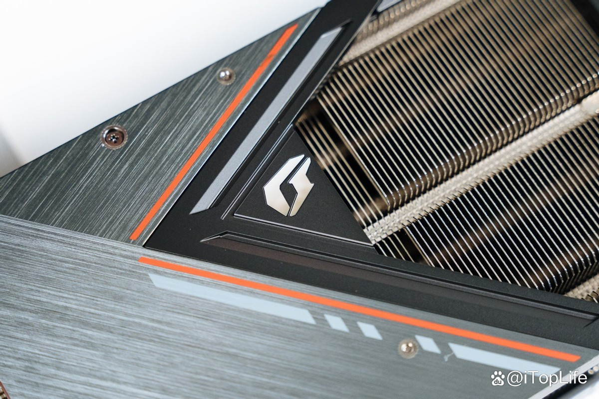 与此同时,三个风扇采用了双滚珠轴承设计,确保风扇能够长时间稳定顺畅运行,并延长使用寿命。而下方的散热模组则使用了最早出现在高单价的服务器中的导流型鳍片,并配以4根6mm+2根8mm热管,“回流焊”工艺使热管与鳍片紧密结合,提升散热效率。