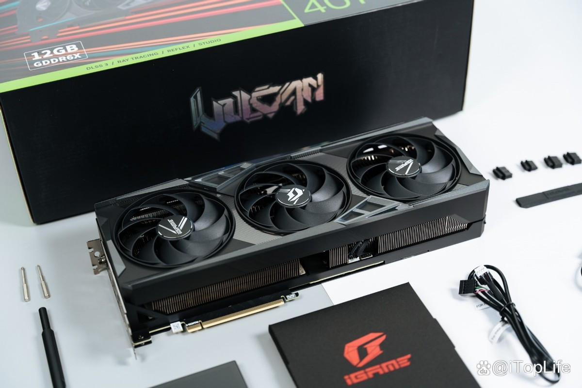 在NVIDIA GeForce RTX 4070 FE公版解禁一天后,终于到了各家AIC解禁非MSPR(建议售价)产品的时候,更高的价格往往意味着更丰富的设计、周边搭配、性能释放。坐拥强劲风冷称号的iGame Vulcan自然不能错过这场盛宴,多次霸榜GPU频率榜单的成绩证明了iGame在性能释放上的实力。显然,眼前的iGame GeForce RTX 4070 Vulcan OC可不是好惹的。