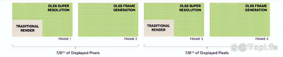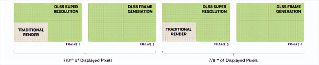 这意味着游戏一旦支持DLSS 3,那么效率将是成倍的提升。但也需要注意,DLSS 3运行的前提是GeForce RTX 40的第四代Tensor Core,第三代以及第三代以前Tensor Core仅能支持到DLSS 2.X,即实现DLSS 3的部分功能,帧率提升虽然也很明显,但幅度没有DLSS 3来得更为夸张。