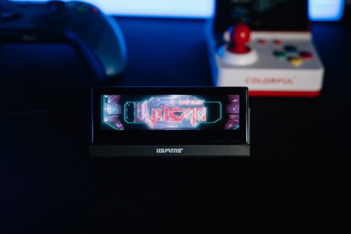 与此同时,iGame还贴心的多准备了一个灯光组件,当智屏移至桌面之后,灯光组件可以填补智屏的空缺,继续提供显卡的RGB的氛围效果。