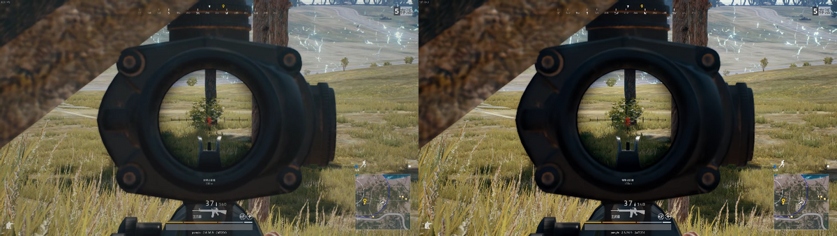 现在这项功能已经可以在4月12日更新以后的VLC播放器实现,并且效果立竿见影。在4K屏幕下,我们播放一段之前录制的1080p分辨率吃鸡视频,并重新进行录制,对比两者之间的效果。这时候会发现开启VSR之后,GPU的占用率会来到50%左右,但画质有了明显提升。