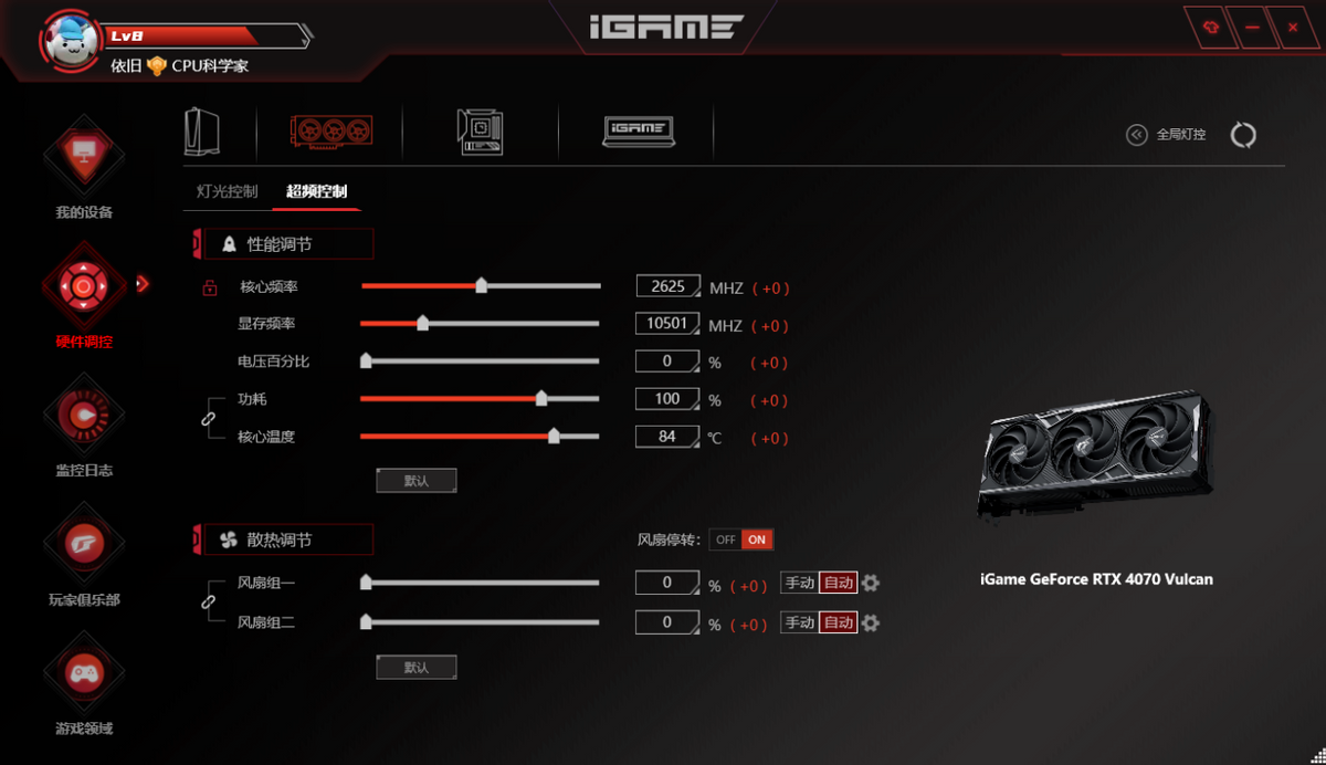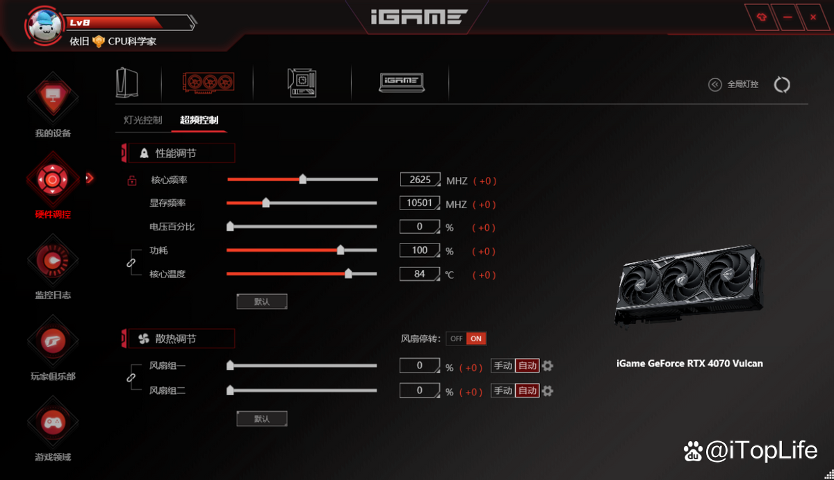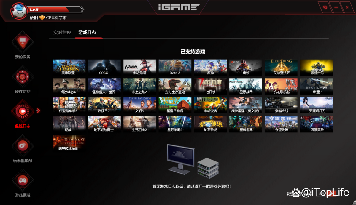 顺带一提iGame Center在超频以外的玩法也不断得到完善,比如对现有硬件环境游戏性能的预估,游戏日志、实时监控等等,已经是一款相当好用的控制中心了。