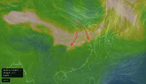 但实际上,随着反气旋系统的形成,我国多地将处在反气旋后部的偏东风-偏南风空气下,这样一来,沙尘还会杀个“回马枪”——随着偏东风出现,华东沙尘将乘着偏东风吹向河南湖北,甚至一部分将一部分翻越巫山进入川东重庆,还有一部分一部分继续渗透两湖平原的湖南江西多地。
