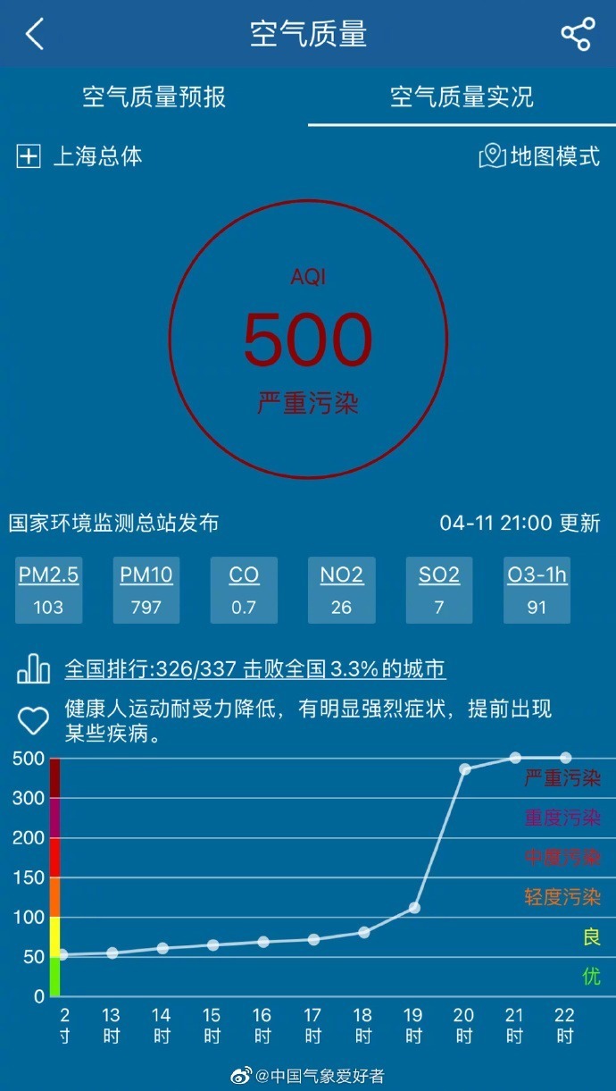 2023年4月8日夜间起,大范围沙尘天气从蒙古高原出发,再次侵扰我国。4月9日,新疆、内蒙古西部和甘肃首先起沙;4月10日白天,沙尘迅速扩展到东北三省、宁夏、陕西和山西,范围比预期还大;4月10日夜间,沙尘叩开燕山和太行山,京津冀出现沙尘暴,其中张家口达到强沙尘暴级别,北京市区也达到了沙尘暴级别,局部达强沙尘暴。4月11日,沙尘更是大举越过淮河,触及南方多省。像是长三角,江浙沪多地4月11日傍晚到夜间空气质量显著转差,上海一度在4月11日晚出现了500上限的空气质量指数,这是爆表级别的强烈污染。