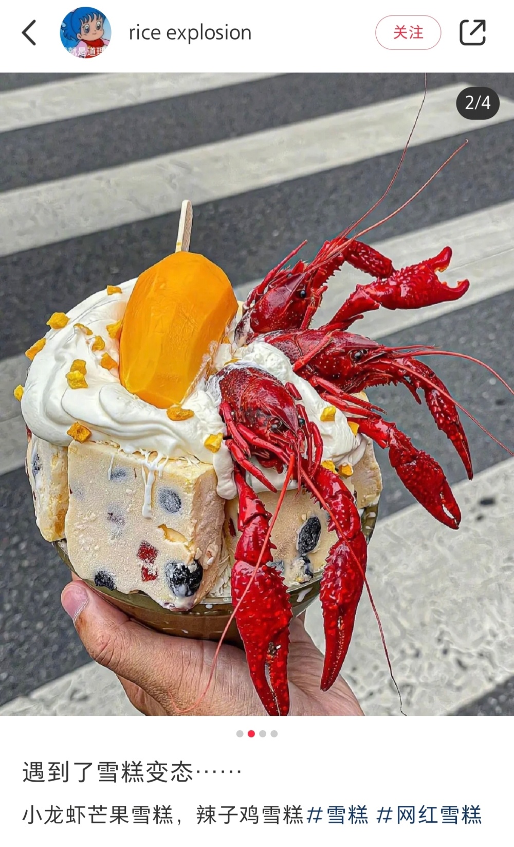综合考量之下,决定给大伙安利小红书天花板下午茶:小龙虾辣子鸡芒果雪糕。
