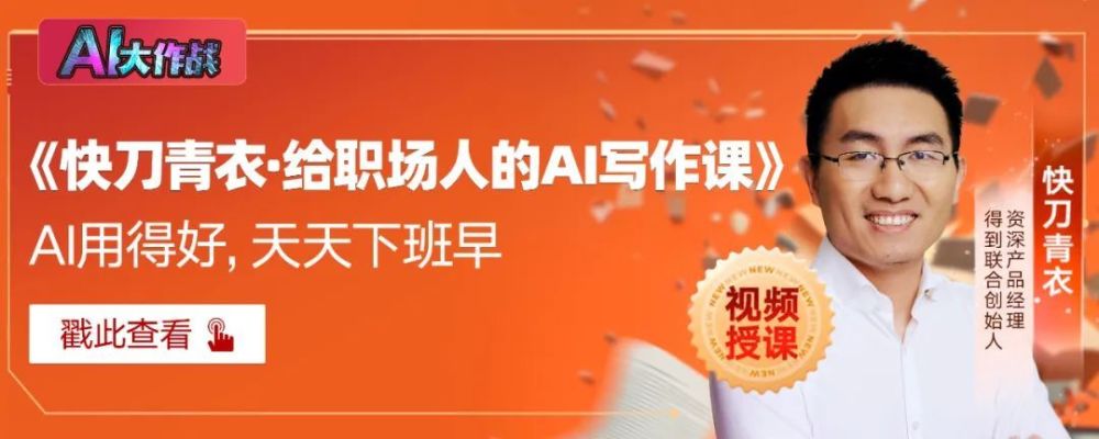 由此再来看得到APP的AI大作战,罗振宇、吴军、王小川、周鸿祎等人的见解并不是唯一的焦点。譬如在罗振宇讲述AI时代“终身学习”的9条猜想的同时,得到APP联合创始人快刀青衣发布了《给职场人的AI写作课》,涉及商务邮件写作、汇报框架搭建、创意批量产出等8大高频写作场景,想要帮助职场人掌握AI写作的关键技能。