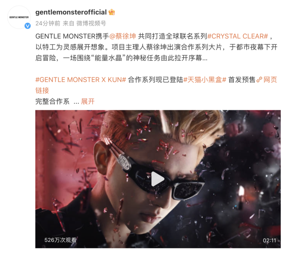 GENTLE MONSTER发布与蔡徐坤共同打造的全球联名系列CRYSTAL CLEAR。