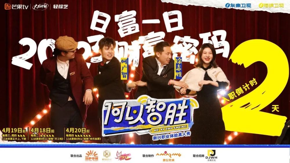 由徐志胜、何广智担任嘉宾的新兴职业体验真人秀《何以智胜》定档4月18日上线芒果TV。