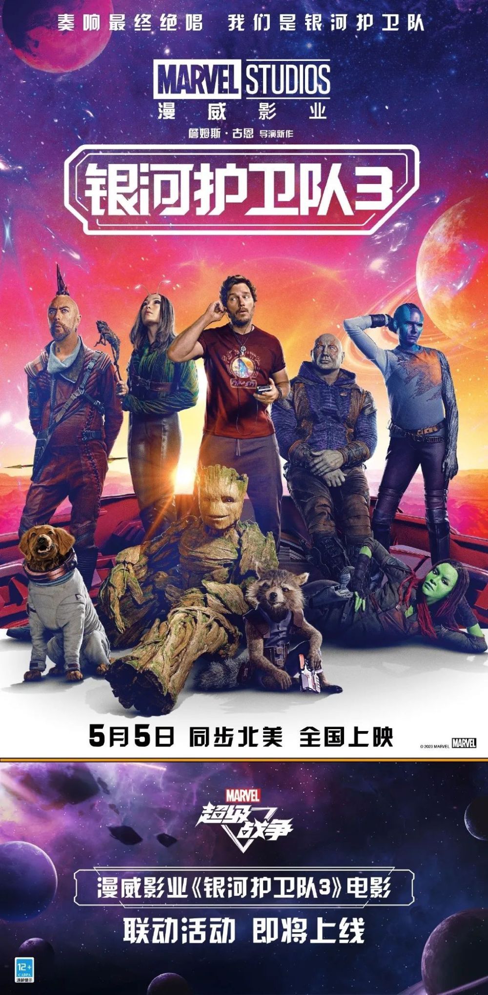 漫威《银河护卫队3》定档5月5日,同步北美上映全国院线。