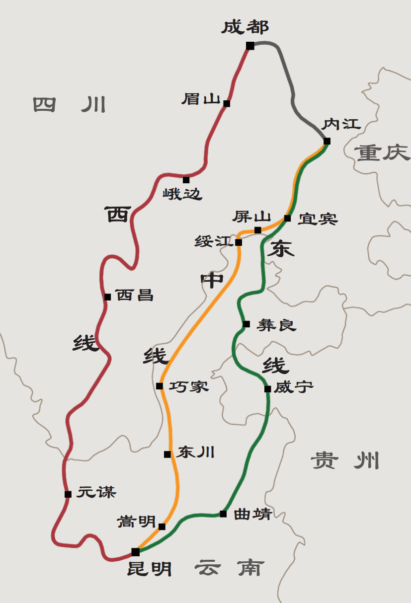 成昆铁路始建于上世纪50年代,在勘测阶段提出了东、中、西三条线路走向方案,因为当时渡口市(今攀枝花市)的建设已经提上日程,同时西线方案穿越众多少数民族地区,且利于沿线丰富的水电、煤炭、矿产、森林等资源的开发,使得路网布局更为合理,最终选择了建设上更为困难的西线。