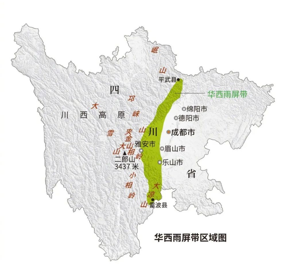 成昆铁路自成都引出后,经眉山至峨眉,这一段地处成都平原向川西高原的过渡地带,终日细雨连绵,云雾笼罩,被称为“华西雨屏带”。天气晴好时,在峨眉站有机会眺望金顶。