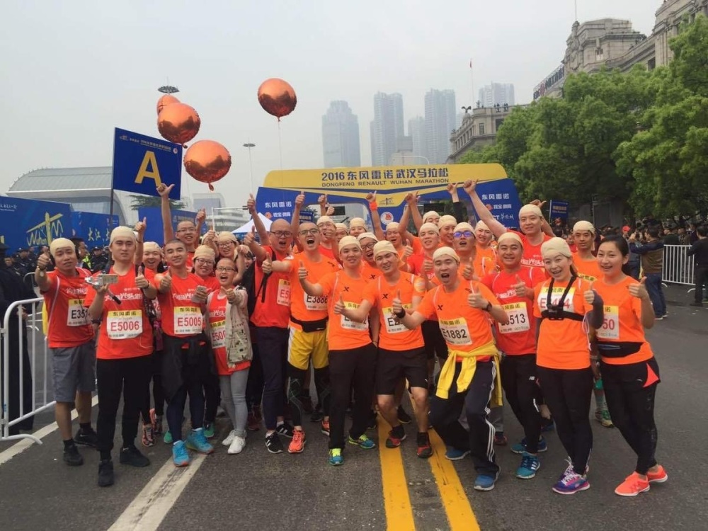 2016年武汉首届马拉松大赛开跑时,一支由300名光头队员组成的队伍引起了媒体的注意。这支特殊的“为爱光头跑”公益队伍由300名爱心志愿者组成,他们以剃头或戴“光头”头套的方式参与“汉马”。此次“为爱光头跑”旨在以“公益+运动”的方式,号召更多人关注小儿血液病患儿群体。